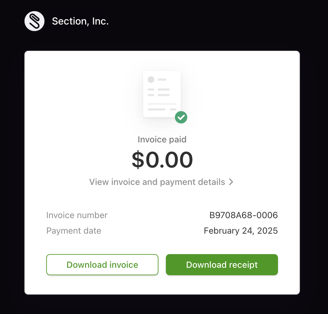 You can get a downloadable copy of your receipt or invoice in your Section account.